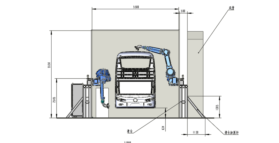 2. Spraying robot for bus roof only spray roof, and spraying robot for side of bus spray the side of bus ,front and back of bus.